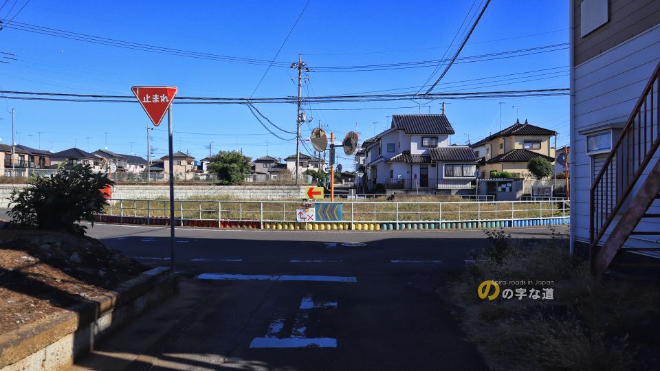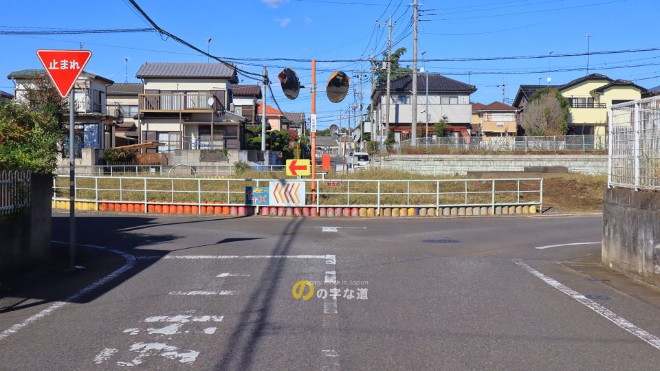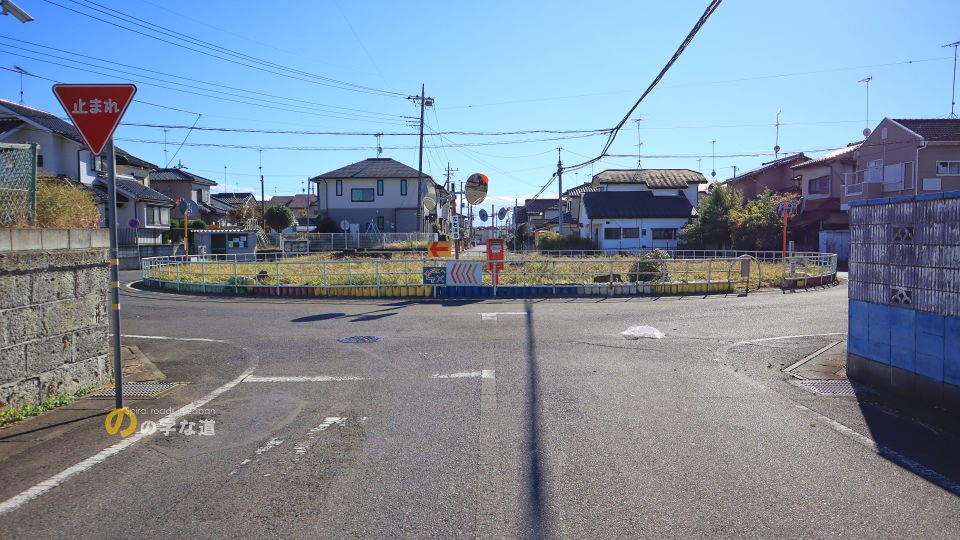 新4号バイパス利根川大橋の北、配電盤団地と呼ばれるエリアの住宅団地内に4枝のロータリー交差点がある。