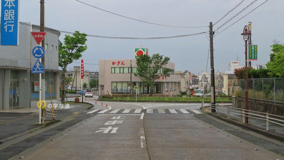 北西(中央通り・市道大原潟下線)から眺める。左の空地は、串木野寿屋(1999年に串木野駅前へ移転済み)の店舗跡地。