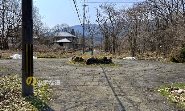 西側から眺める。回転方向は案内されていない。紅白のポールは積雪時の道路境界を示すもので、市道だからこそ設置されているのだろう。