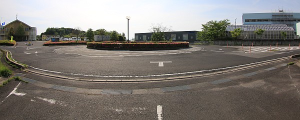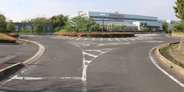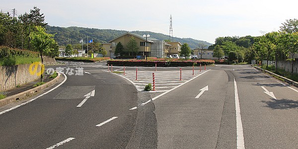 環道外径は約40m、3枝の交差点(及び島根県広域防災拠点への出入口直結)で、大規模な部類に入る。大型トレーラーでも余裕をもって旋回できるはずだが、環道の一部で対面通行としている点が残念だ。