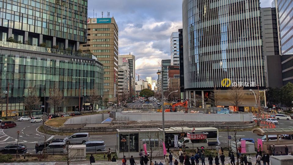 名古屋駅前ロータリーを東側から眺める。大きすぎて画角に収まらない。