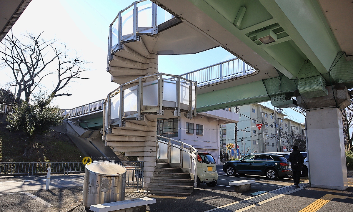 しいの木橋(千里D-E歩道橋)の北側螺旋階段。