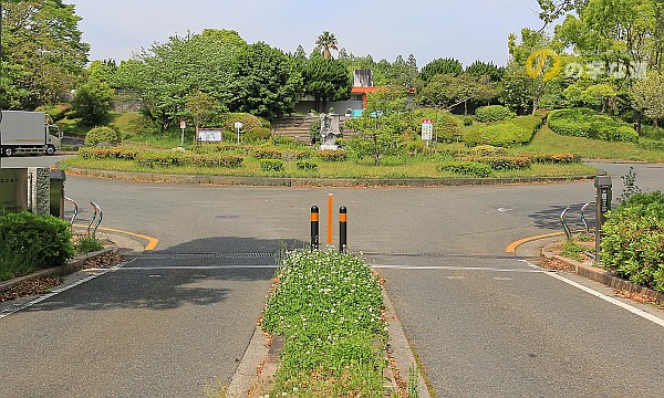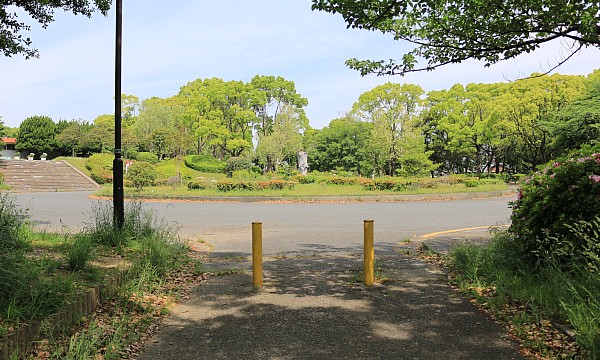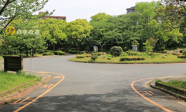 市道桃園5号線から眺める桃園公園ロータリー。環道に接続するまでが市道である。