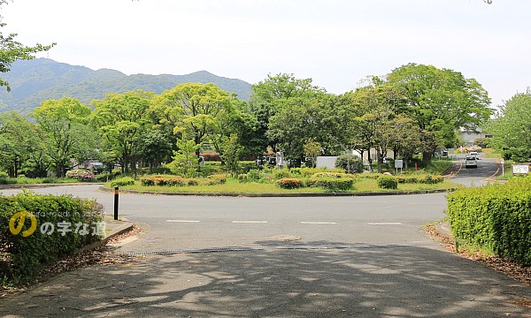 車道部の外径は約50m、すぐ近くの尾倉ロータリーに匹敵する大規模な円形交差点である。しかし、自動車が通行可能な接続路は2本しかなく、ロータリー交差点としての役割は放棄した状態だ。すぐそばに無料駐車場があるが、ロータリー交差点に張り出した木の枝が涼しげで、環道には休憩する社用車がずらりと並ぶ。