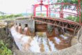 中央島の建物周囲にある側溝のようなもの、手を突っ込んだら熱湯だったので、この中にあるのは源泉施設と直感した。