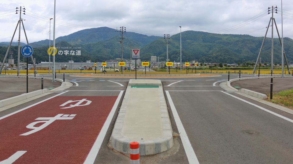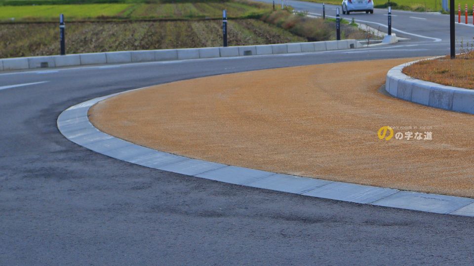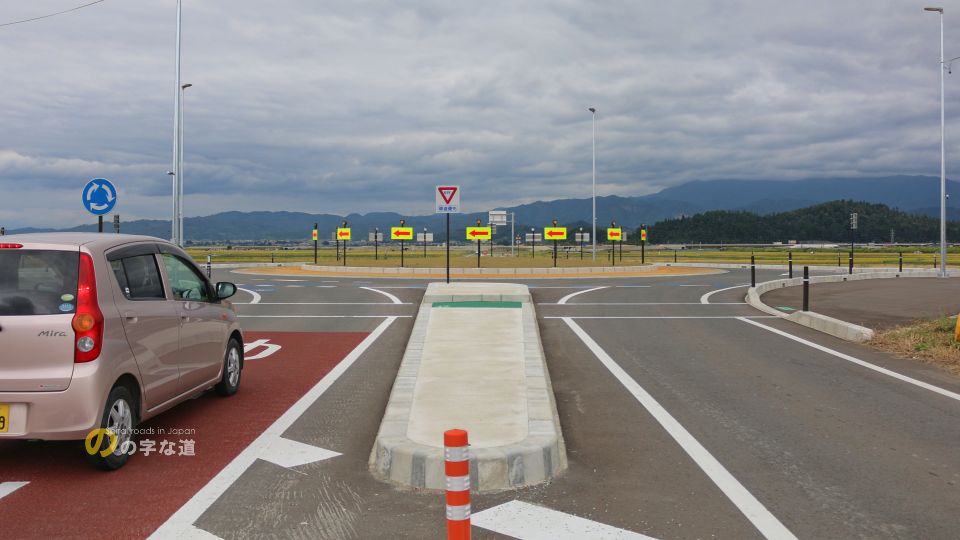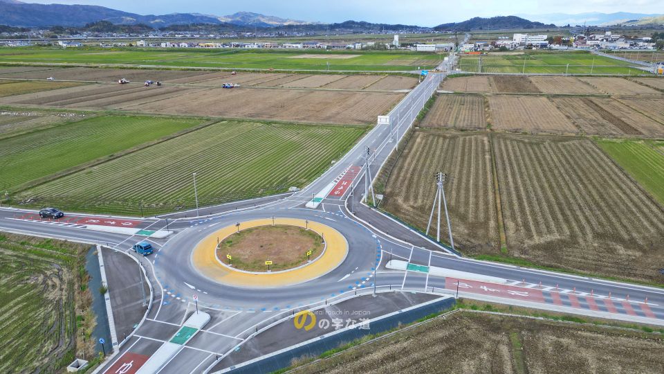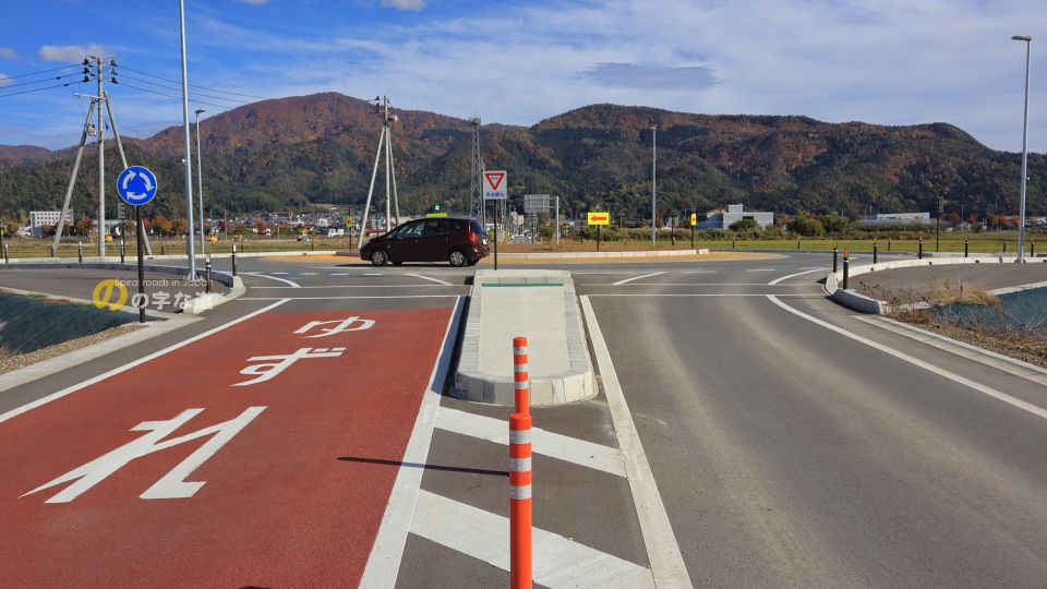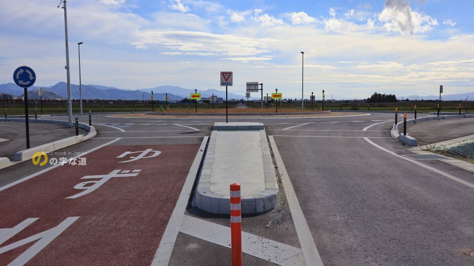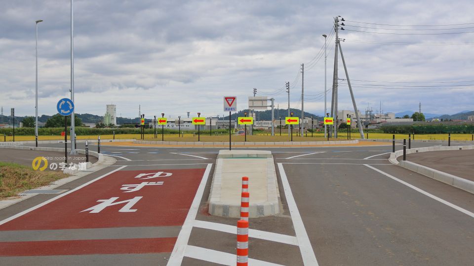 「こんな田圃の真ん中で車通りが殆どない交差点をなんでラウンドアバウトに?」と思わせる交差点であるが、近い将来に商業施設の誘致や道の駅が移転する予定となっており、むしろこんなラウンドアバウトで捌ききれるんだろうか、と思うような状況になるかも知れない。2021年時点では交差点名称はないが、交通量が増えてくれば名付けられるだろう。