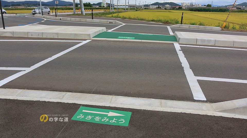 北側から。北側と同じく側線だけが引かれている。これは横断歩道ではなく歩行者横断指導線ということらしい。歩行者横断指導線の場合、横断しようとする歩行者がいても車は一時停止の義務はない。これでいいのだろうか?