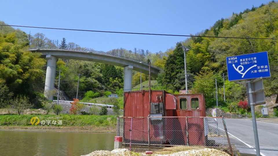 江の川は県境を越えて南に進んでもまださらに上流に向かうが、途中で山間の道へ入った場所にこの梨の里ループ橋がある。集落を連絡するというよりは、山あいに点在する住戸を連絡するに近いかも知れない道路だ。名前の通り、周辺は梨畑が多い。もっとも、それ以外に特筆すべきものはなく、周辺には「過疎基幹農道」なる農道もある、正真正銘の過疎地域である。