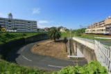 立体交差の下からループ方面を眺める。ひとつの車線のみ交差していることがわかる。早瀬大橋横浜国立大学橋に似ている。