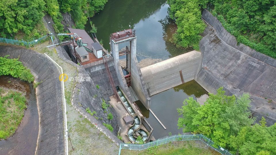 豊浦町を流れる貫気別川にある、ほくでんエコエナジー豊浦発電所取水ダムである貫気別川ダムに設けられた魚道がループしている。