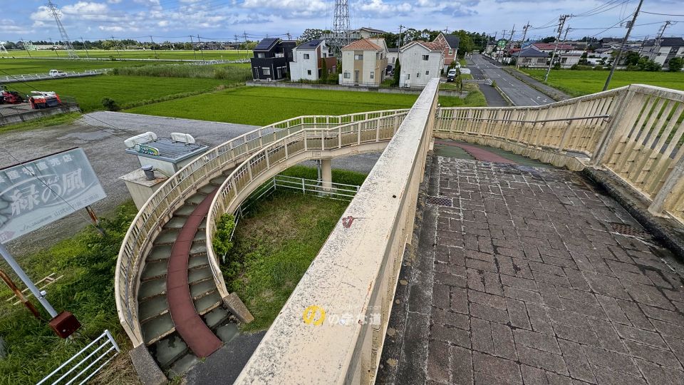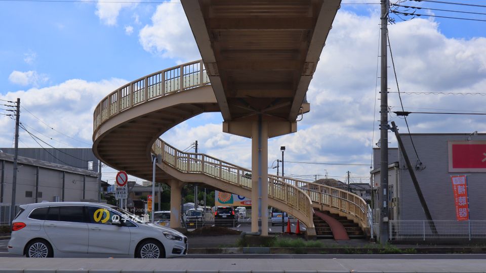 JR外房線大網駅の東1.3km、国道128号の横断歩道橋両端斜路がループしている。