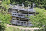 施工者は確認できていないが、ループ魚道の製造元・昭和コンクリート工業のお膝元であり、同社が関与している可能性が高いものの、桁が鋼製である。同社がトラック式スパイラル魚道の特許を出願した1999(平成11)年8月よりも前に竣工していることから想像すると、実験的な施工の可能性※ がある。継続調査事項だ。
