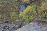 砂防堰堤の堆砂はまだ満杯には達しておらず、平時は下側の魚道出口が機能している状態だ。ダムフェンス(黄色い樹脂製の流木止め)付近に出口が隠れているはず。
