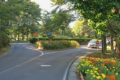 ループの内外は緑地として手入れされており、外側には藤棚もある。