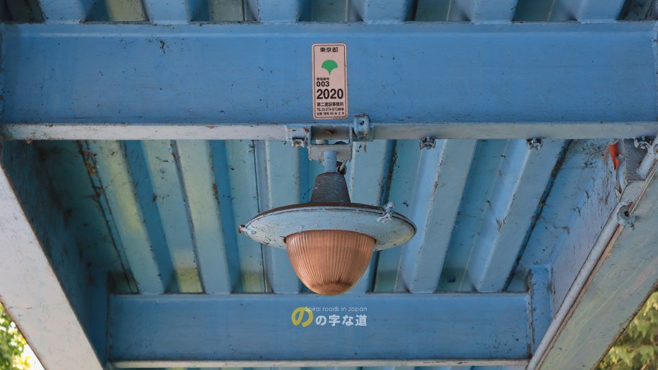 斜路途中に設置されている街灯が時代を感じさせるデザイン。