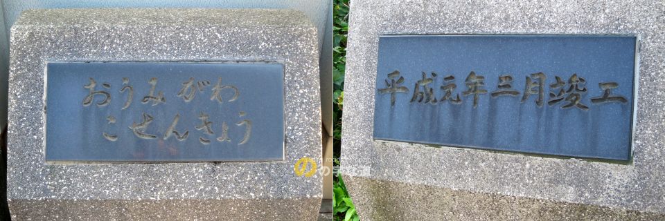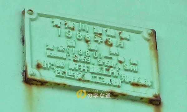 国道8号側の親柱に設置されている橋名板。反対側には漢字の橋名板があるが、あいにく歩行者通行止め区間内だ。