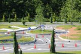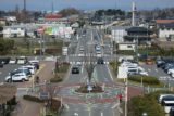 大美野噴水ロータリーを西から眺める。一時停止の規制はなく、この道路が優先道路であるが、交通量はそれほど多くない。