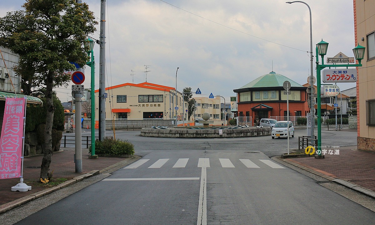 南海電鉄北野田駅の西500mに、8本の道路が交わるロータリー交差点がある。中央島には噴水がある。そのような円形交差点は、過去にはいくつかあったけれど国内ほとんどで撤去されており、現存している物件は珍しい。そんな非凡さを知ってか知らずか、駅からロータリー交差点の間のわずかな商店街が「ファウンティン通り」と名乗っている。