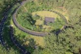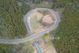 大野原58号ループ全景。不法投棄物が放置され、弧を描く部分はかなりの急勾配で、路面は荒れている。