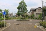 計画当初からここをロータリー交差点とする予定だったようで、見通し確保を念頭に置いたと思われる用地整備が行われている。しかしラウンドアバウト化は想定していなかったのか中央島には枝垂れ桜が植えられている。成長が早く、「桜切る馬鹿・・・」の諺どおり剪定が難しい樹木であり、将来の見通し悪化を懸念する。
