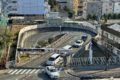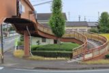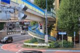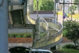 大阪ドーム前歩道橋の東側(左岸側)昇降階段がループを描いている。正確には歩行者用に階段が四角いループ、自転車用スロープが角丸のループだ。