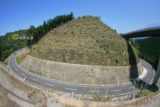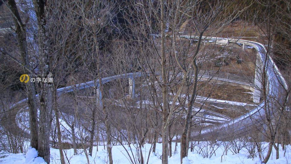 ダム建設地の下流1kmには小双里(こぞうり)という集落があり、その標高440mから1kmでダム天端と同等の標高565mまで登らなければならない。単純計算で13%の急勾配となり、当然道路構造令を逸脱する。この問題を解決するためにループ橋が建設されることになった。短径170m・長径280mの長円形で交差部の桁下高は約50m。