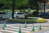 坂田駅前ロータリーを南側から眺める。写真には写っていないが、こちら側にも警戒標識「ロータリーあり(201の2)」が設置されている。この方向から進入する際は一時停止が必要。