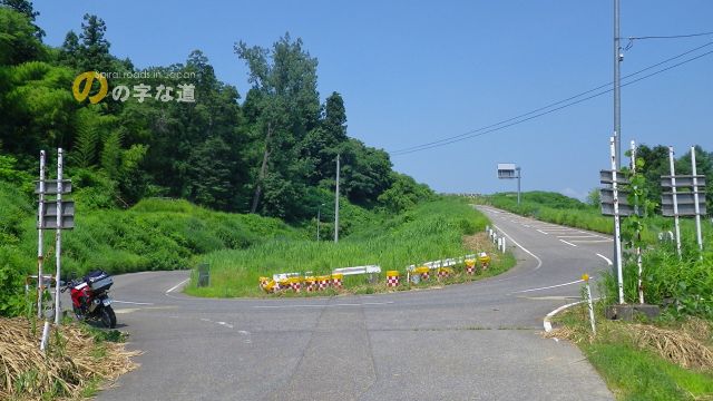 これまで数多くののの字を巡っていると、地図上の道路を見ただけでそののの字がどういう状態にあるのかだいたい想像できるようになってくるから不思議。ここはおそらく道路拡幅計画の真っ只中にあるのだろう、そんなニオイが強烈に漂う。事実、国道事務所のサイトを検索してみると2003年頃に供用開始されたものらしきことがわかる。しかし、道路拡幅後も残るのの字なのか、それとも拡幅後はなくなる運命なのか。それは現地に行かないとわからない。