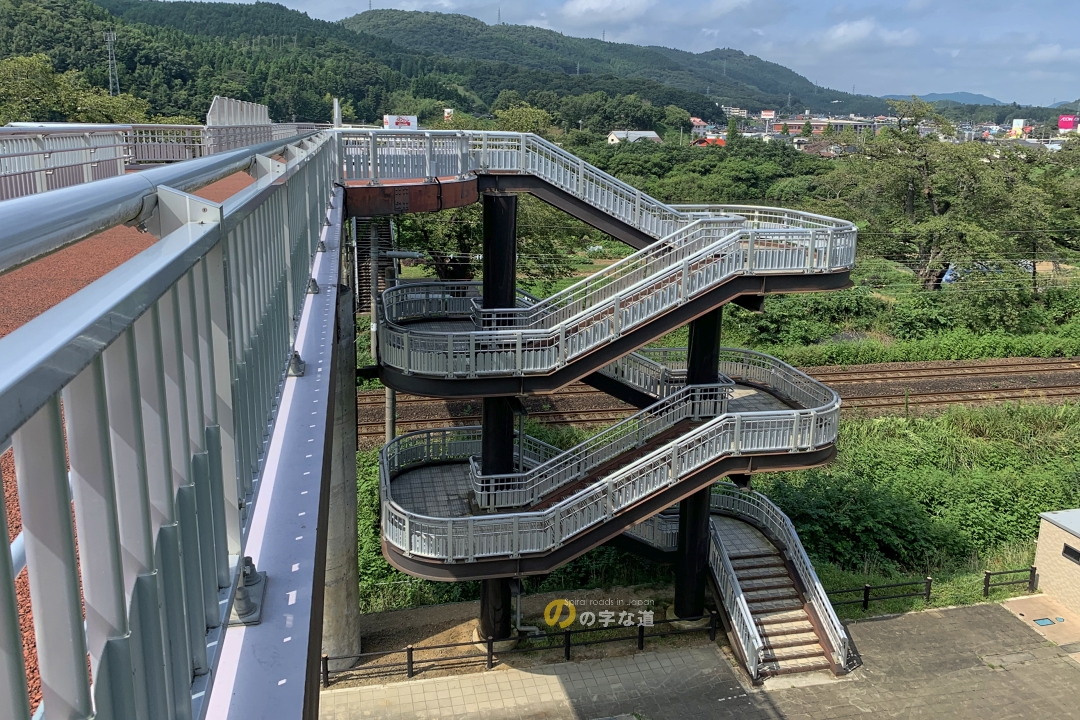 横断歩道橋を夜間ライトアップする想定のため「映える」デザインが優先された模様だが、螺旋階段部自体は私の興味を強く刺激するものではなかった。