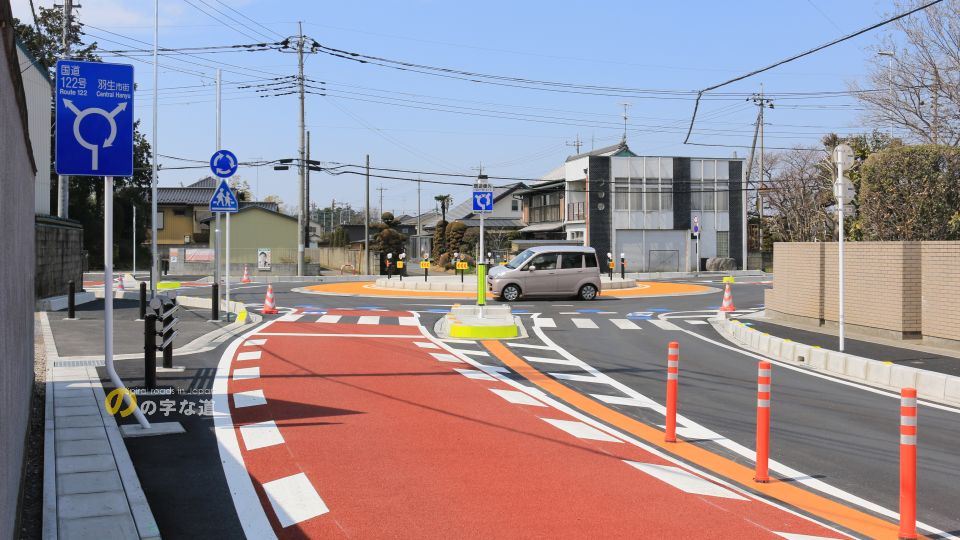訪問したのは供用開始から4日目であったが、国道旧道だけあって通行量が多いにも関わらずいずれの接続路も渋滞になるようなことはなく、ラウンドアバウトの効果を発揮しているように見える。自動車のみならず耕耘機や自転車もマナーよく利用していた。とりわけ自転車のお姉さん(筆者比)が環道外縁に沿って颯爽と駆け抜けている姿が印象的であった。すぐ近くにあるイオンモール羽生の円形交差点で慣れているのか。地域での事前教育がバッチリだったのか。