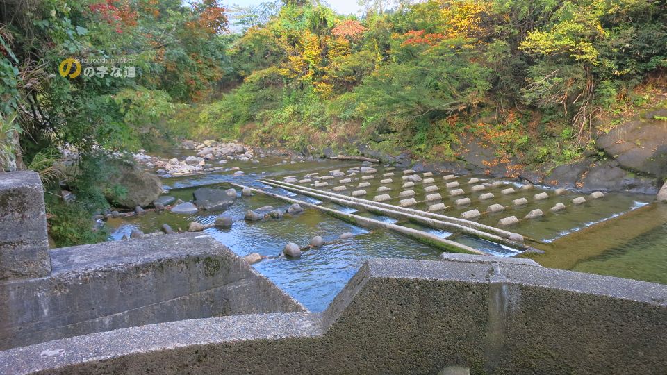 あっちの階段式魚道は1990(平成2)年竣工。