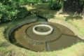 魚道最下部は、堰堤前の水が澱む場所に接続している。隔壁が一部破損していることが気になる。魚が体当りして壊れたか(それはないわな)、コンクリートを破壊するほどの石が転がったのか。