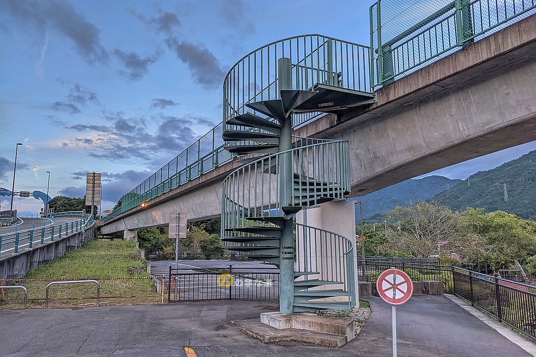 玉名市のほぼ中央、菊池川左岸側にある運動公園の入口に3枝のロータリー交差点が設けられている。いずれの接続路にも警戒標識「ロータリーあり(201の2)」は設置されておらず路面ペイントで右回りを誘導しているだけだが、通行する車は躊躇する様子なく...