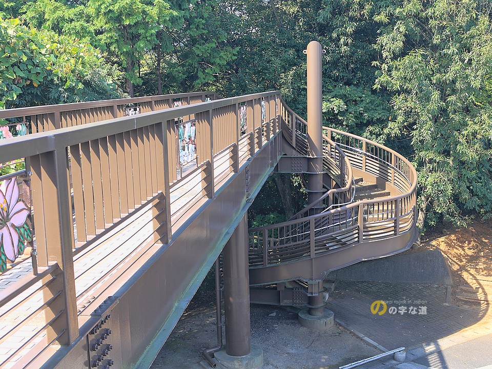 国道192号川之江バイパス、フジグラン川之江前に架けられた横断歩道橋の一端がループしている。横断歩道橋は国道192号川之江バイパスの開通時に架けられたが、当初はループしていなかった。フジグラン川之江開業(1994年9月15日)に伴う駐車場ス...