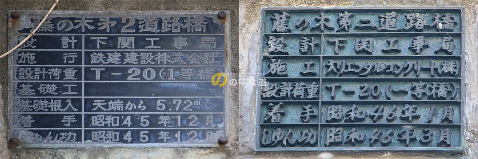 橋台に取り付けられている構造物銘板と橋桁に取り付けられている橋歴板。その当時の物件としては珍しい気がするが、国鉄では当然のことだったのだろうか。