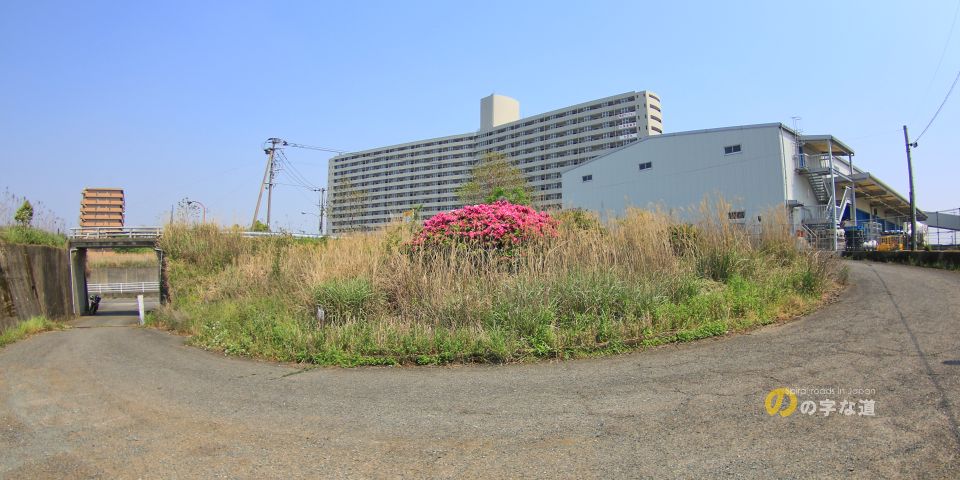 ループ最奥部から眺める藤の木第二道路橋ループ全景。道路としての役割を終えてかれこれ30年経っても、5月になればツツジが花を開く。