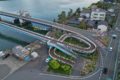 豊岡大橋自歩道橋の主桁部はおよそ350m。前後の斜路を含めると550mほどあり、徒歩なら渡り切るのに7分かかる。長い。