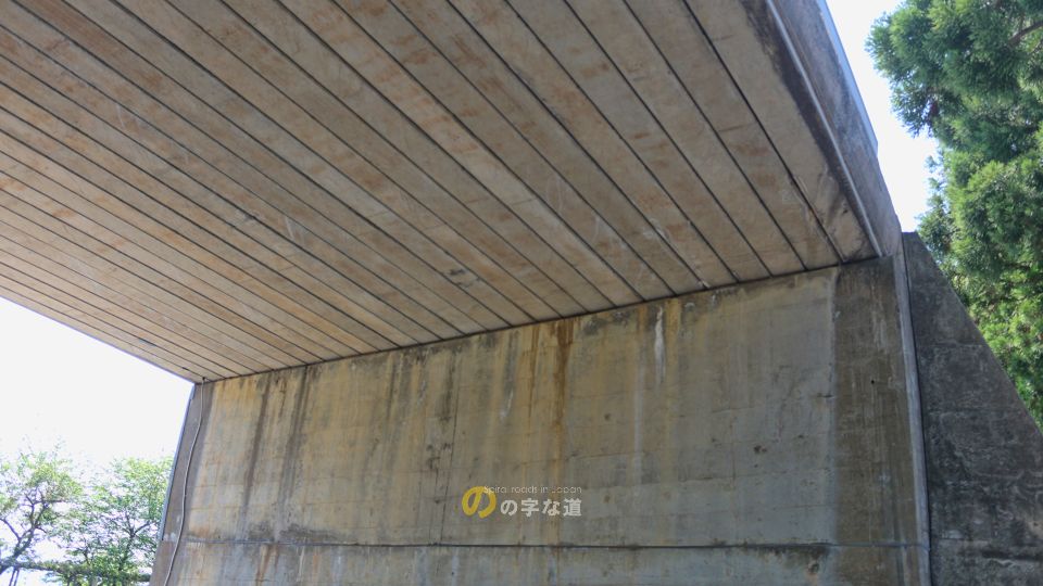 交差する橋梁は1968(昭和43)年完成の「無名橋」、RC床版橋だろうか?