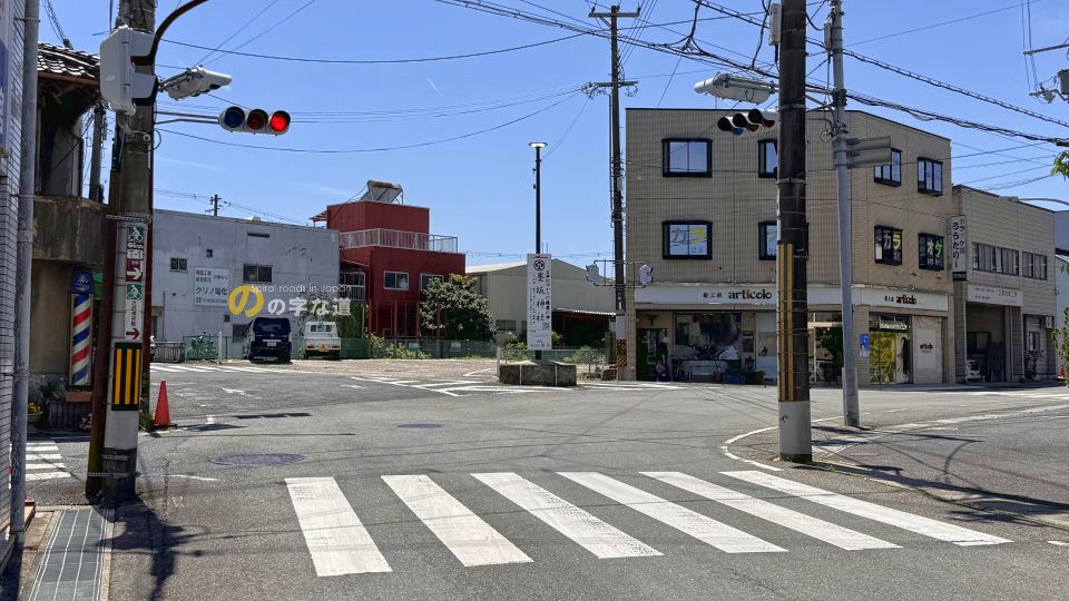 現在は信号機で制御される交差点で、交通島は整流効果のみ有する。