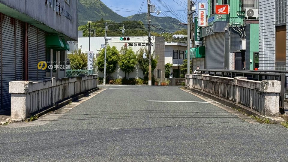 交差点のすぐ南にある大正橋。現在の橋は1945(昭和20)年に架けられた橋長24.3mのRC桁橋。下を流れる川の幅(名称不明)は1m程度なのにこの橋長は何事か?と思ったら、戦後の河川改修で埋め立てられたそうだ。