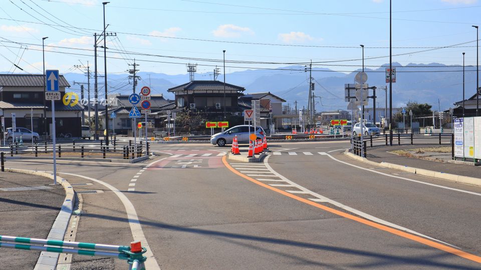 久大本線筑後大石駅近くの変則六叉路がラウンドアバウトに改修された。
