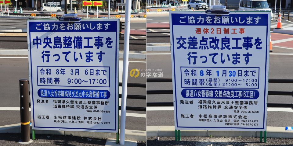 県内の四カ所のこれ(筆者注:環状交差点)についての事業箇所でございますけれども、五差路といった変則的な交差点の処理が必要であり、環状交差点として整備を進めているところであります。その進捗状況でございます。八女市、うきは市の二カ所につきましては県が事業を進めておりまして、八女市の新庄交差点につきましては詳細設計を終え、今年度から用地買収に着手をいたします。また、うきは市の高見交差点につきましては、昨年度から引き続き詳細設計を実施してまいります。