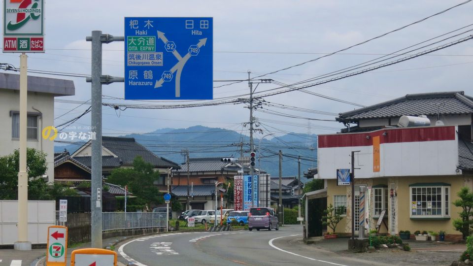 高見交差点を西側から眺める。直進は県道749号と示されているが、正確には県道732号筑後大石停車場線と県道749号保木吉井線の重複区間だ。500m東側で県道749号保木吉井線の単独区間になるので、運転者の混乱を招かぬような配慮だろう。