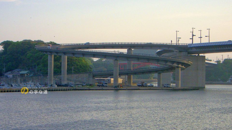 牛深ハイヤ大橋ランプ橋を俯瞰する。