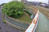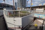 北西角の昇降階段。主桁の底部は目隠し板が施されているが、それなら箱桁橋でもよかったのでは?と考えるのは素人の発想か?