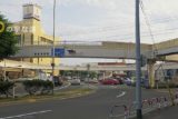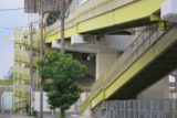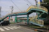 南西角から眺める八戸横断歩道橋全景。階段橋脚の頂部は斜めのかぐや姫型。