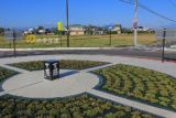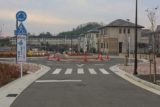 ラウンドアバウトを南側から眺める。規制標識「一時停止(330-A)」と警戒標識「ロータリーあり(201の2)」が撤去され、規制標識「環状の交差点における右回り通行(327の10)」「指定方向外進行禁止(311-F)」が設置された。