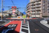 東西方向(海岸線に対して直角方向)の道路は避難路になることから、信号機が避難の妨げにならないようラウンドアバウトを設けることになり、2021年から順次供用開始となった。2022年08月10日、JR常磐線旧線を活用した町道頭無西牛橋線が正式開通したので、同地を訪問取材した。
