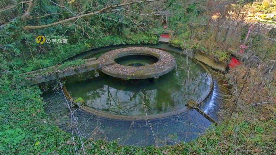 この円筒分水工の存在を知ったのは、実は2021年4月である。八代・栗林団地の円形交差点を取材した後、熊本市内へ向かっているときに車中で地図を眺めていた際に視界内に何か丸いものが見えた。円筒分水工だと直感したが、手持ちの情報なくして見学の意味なしと判断し、1年間の予習・机上調査を経て訪問の機会を探っていたのだ。