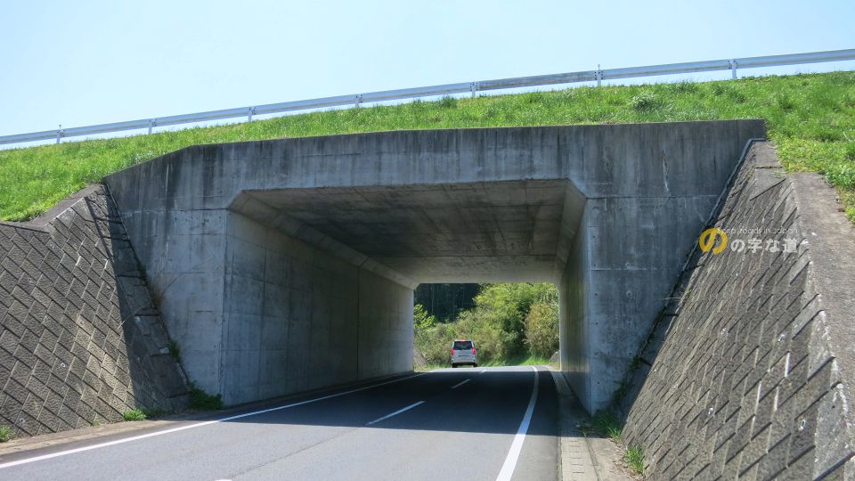 ループの南側から眺める。ループしていることを示す警戒標識はなく、事前知識がなければ単なる立体交差に見えるだろう。